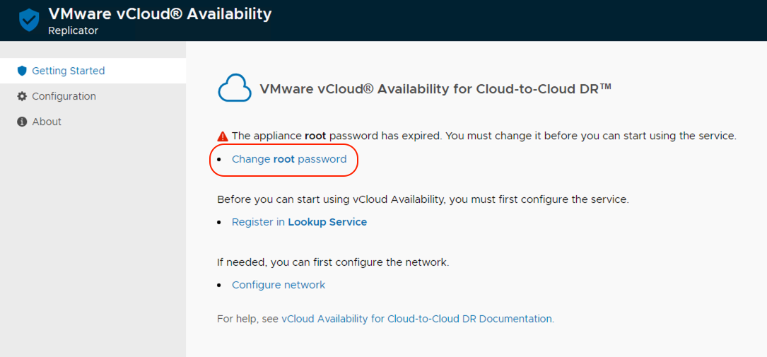 註冊vCloud Availability Replicator到同一站點下的vCloud Availability Replication Manager ,首先登入到https://appliance-ip-address:8044