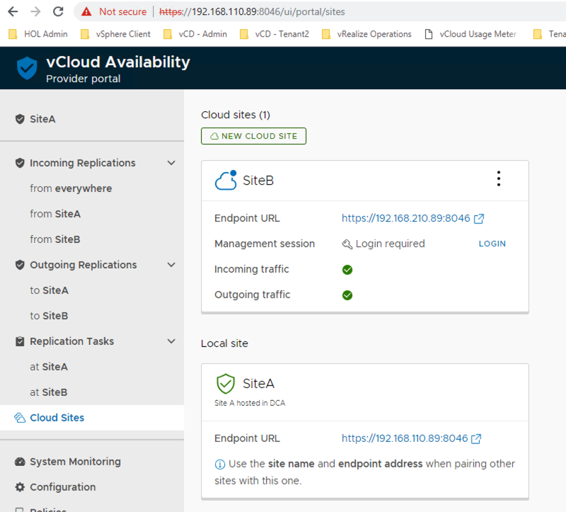 - vCloud Availability for Cloud-to-Cloud DR portal