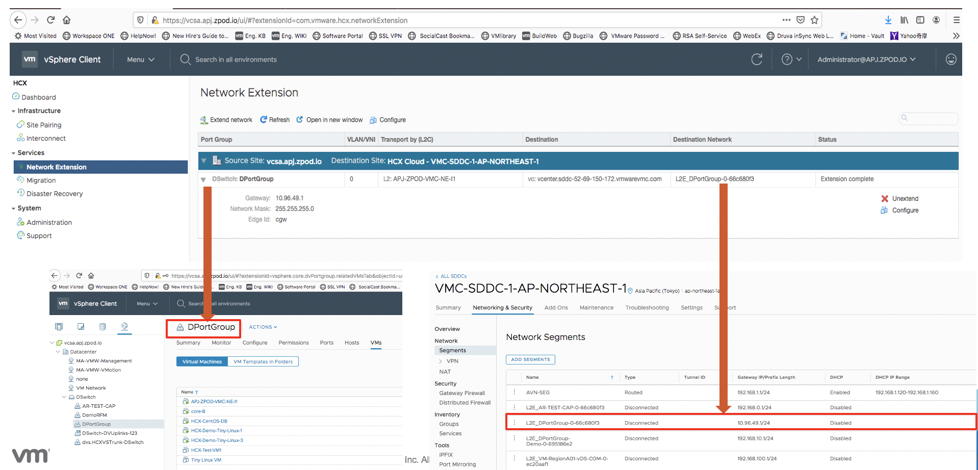 The L2 Extension (L2 VPN) has been established by using HCX.