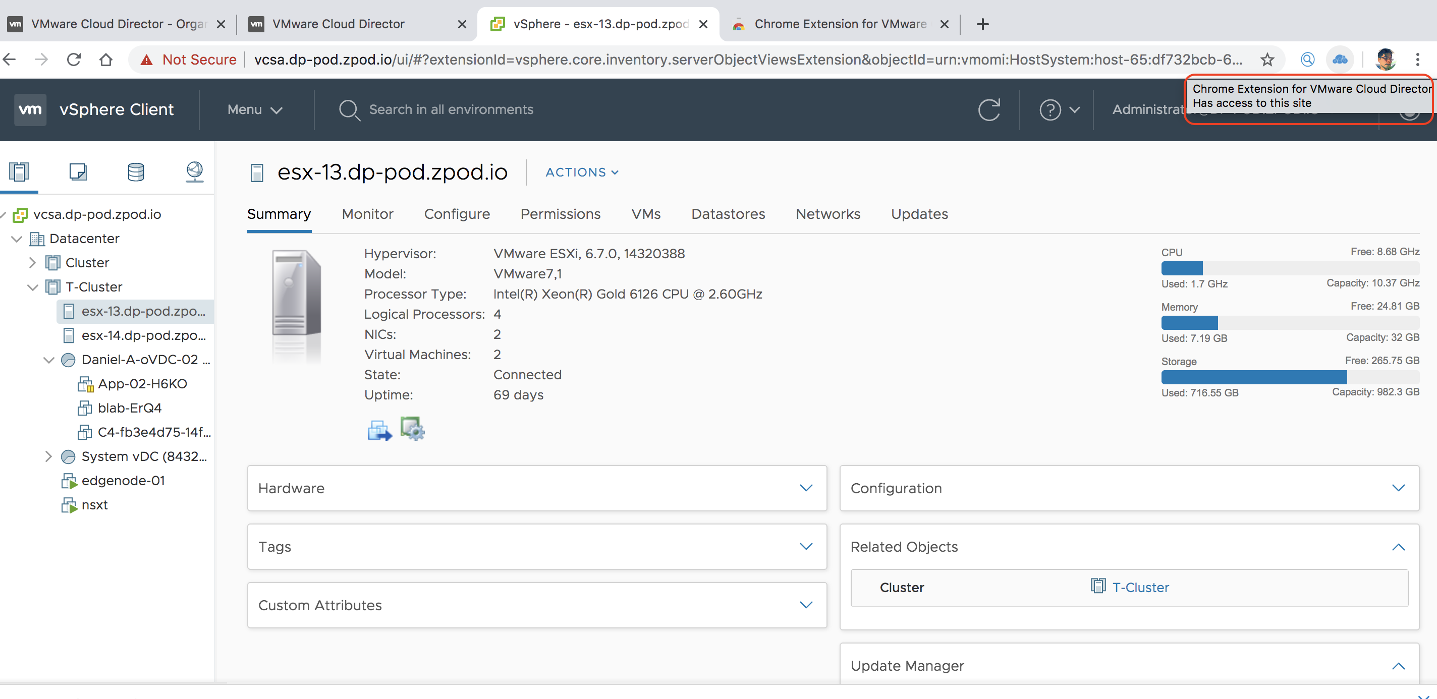 - Chrome Browser Extension for VMware Cloud Director (New in Cloud Director 10.1)