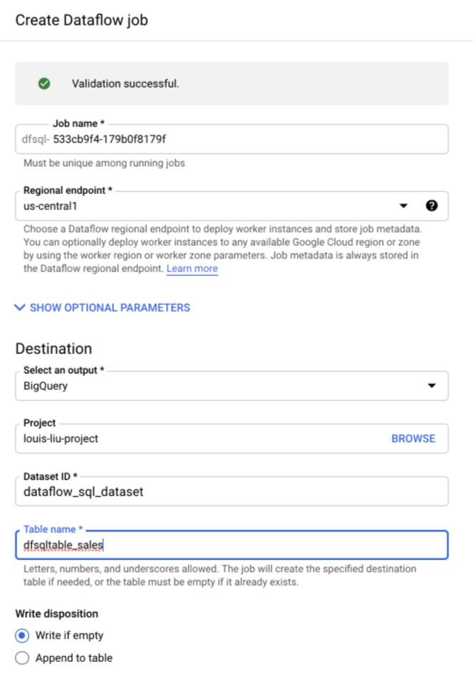 設定BigQuery預設之標準SQL語法變更為Dataflow的處理方式