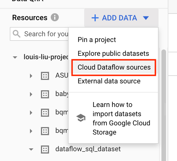 - 建立Dataflow需要處理的資料表來源