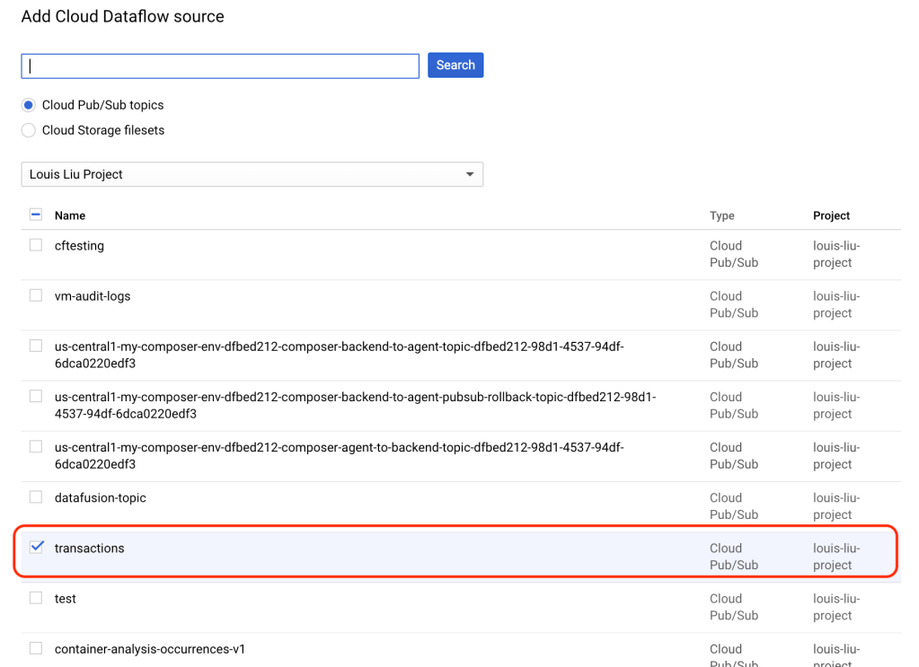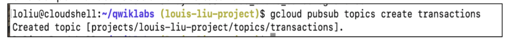 首先建立一個名為”transactions”的Pub/Sub主題: