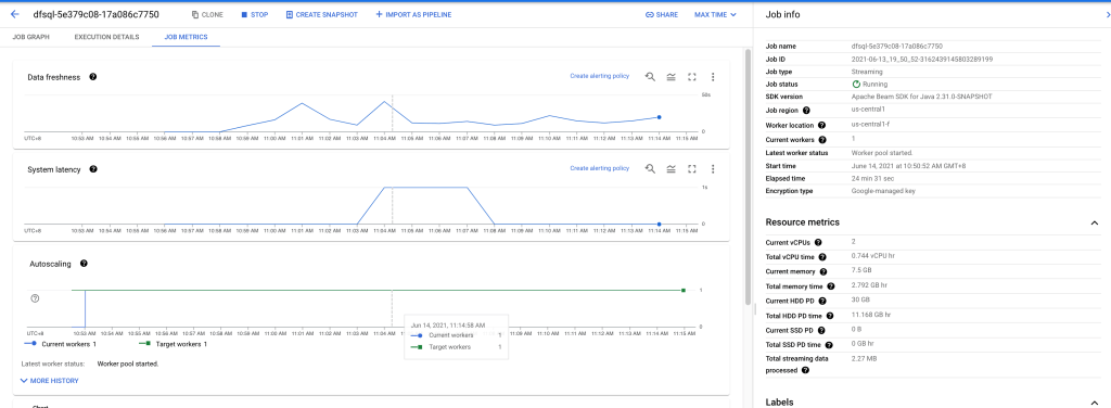 Dataflow job會於後台自動根據工作負載做Autoscaling Worker Nodes的動作