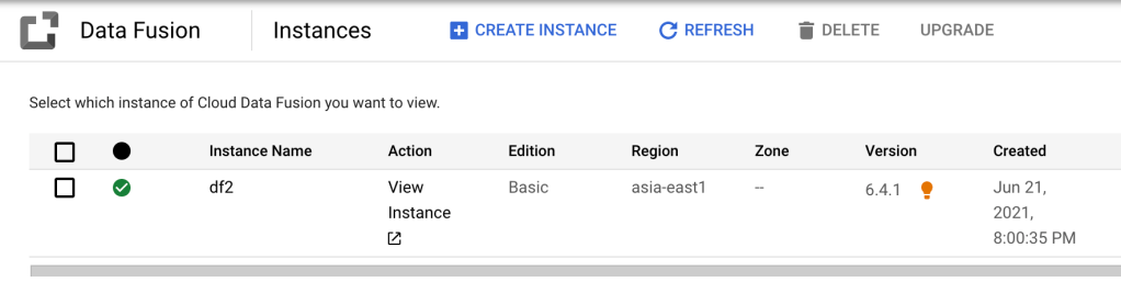 - Crate Cloud Data Fusion instance