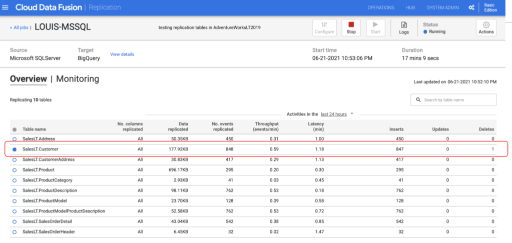 We can test by deleting some records in MSSQL and see if the deleted data will also be removed from BigQuery!