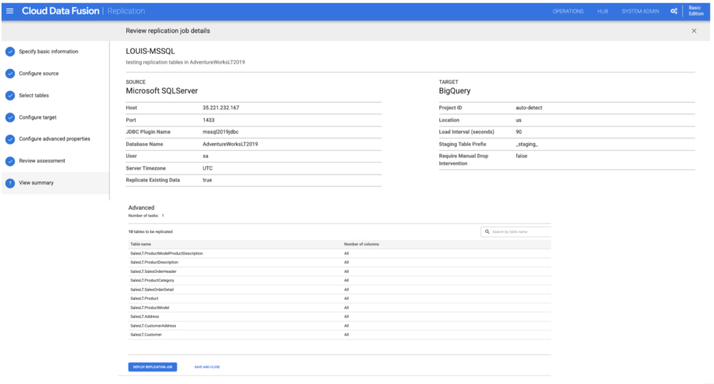 2. Create and run a Data Fusion replication job