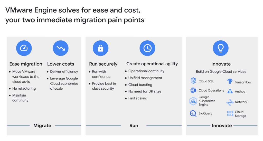 客戶使用Google Cloud VMware Engine預期可獲得的各種好處
