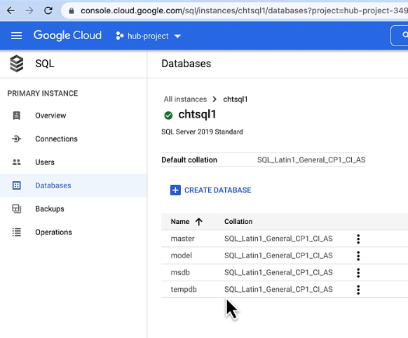 在VPC裡我們有一個Cloud SQL for MSSQL的資料庫,Private IP 地址是10.34.64.3。