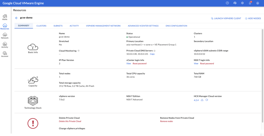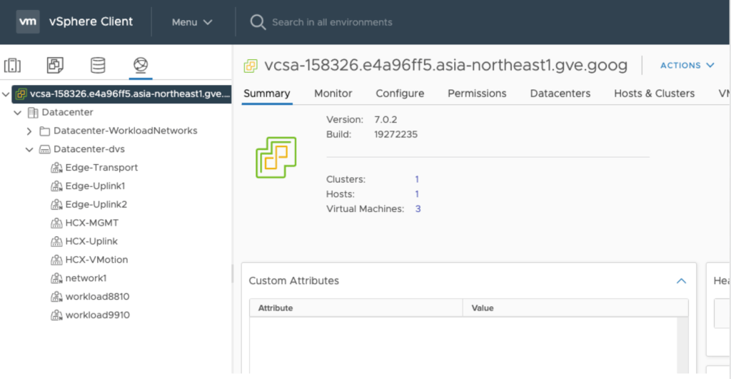 首先我們看一下我們的環境,我們在Google雲上,建了一個GCVE私有雲如下: