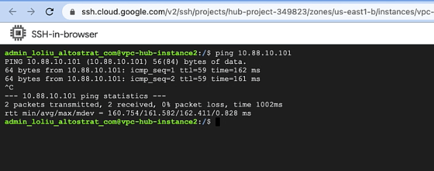 專案內有一台名為”vpc-hub-instance2″的Linux VM,它的內部IP為10.2.1.2,我們要拿他來驗證可以連到GCVE裏的ubuntu1VM。
